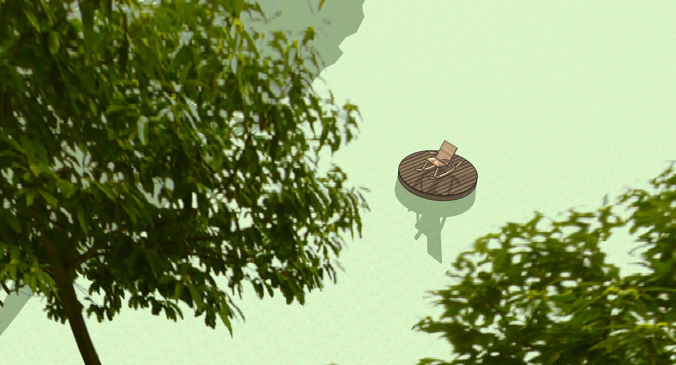 When in use the rocker sends very brief radio signals to the trees via a piezoelectric switch in the base. Hidden in the trees surrounding the chair are sound vessels made from old conga drums. These speakers emit carefully composed and curated sounds contributing to the existing soundscape.