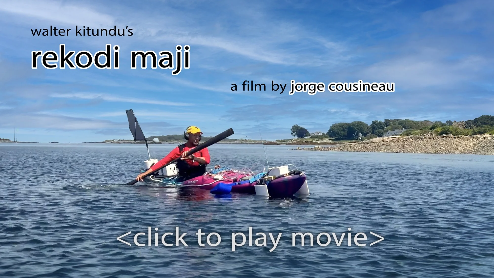 Rekodi Maji (record the water) is a project/artwork by Walter Kitundu in conversation with waterways and the communities which they surround. The sculptural heart is a kayak turned musical/scientific instrument adorned with strings, floats, and sound-makers carefully calibrated to respond to the sea state, the movement of the boat, and the weather conditions. This instrument records sonic data as Kitundu paddles past coastlines and islands and into bays and inlets. The kayak itself serves as a resonant chamber to amplify the sounds of strings and tines on the hull. Each journey produces a unique composition, an audio rendering of a particular line traced on the surface of the sea, lake, or river.
